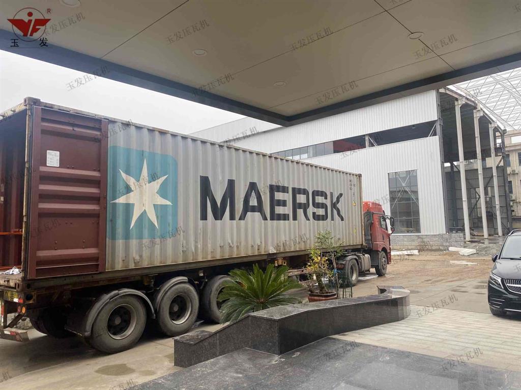 外貿壓瓦機設備訂單集裝箱發貨中,如有需求歡迎咨詢,玉發機械期待與您合作共贏。